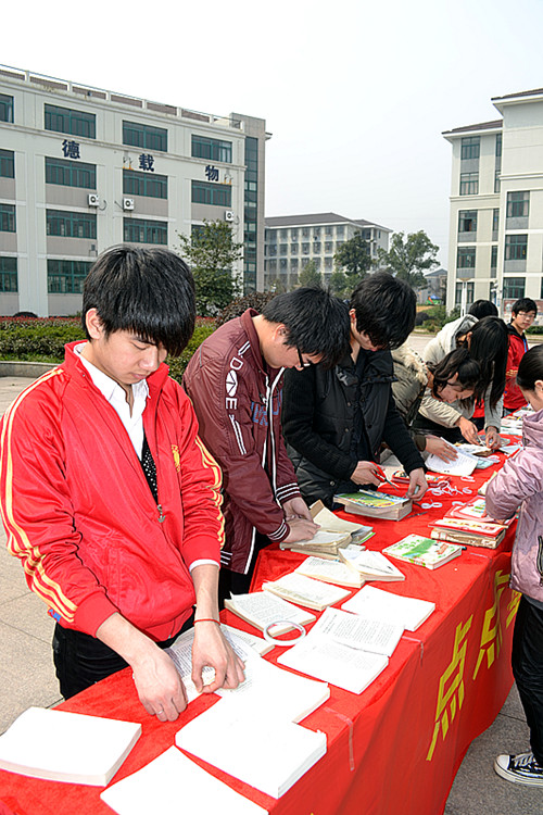阅读能致远,书香亦修身。为加强学风建设,提升大学生的人文素养,2012年3月22日,由团委、图书馆联合举办的第三届“全民阅读”读书月开幕式活动在我院图书馆前广场展开。