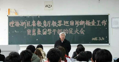 为了迎接省教育厅教学巡回诊断检查工作,3月10日17:10分在1402教室贸易系召开了团学干部动员大会。出席本次会议的有贸易系系主任卜范达教授、贸易系党总支副书记张凤老师、贸易系团总支书记严雪娟老师和90位团学干部。