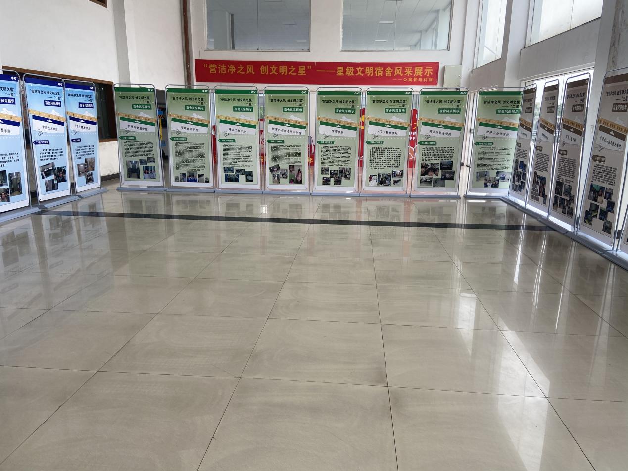 树星级典型,争创文明之星,在星级文明宿舍风采展示活动中,通过二级学院推荐和线上投票相结合的方式,评选出了24个“星级宿舍形象大使”,并在学校行政楼大厅进行风采展示,得到了师生们的一致好评。